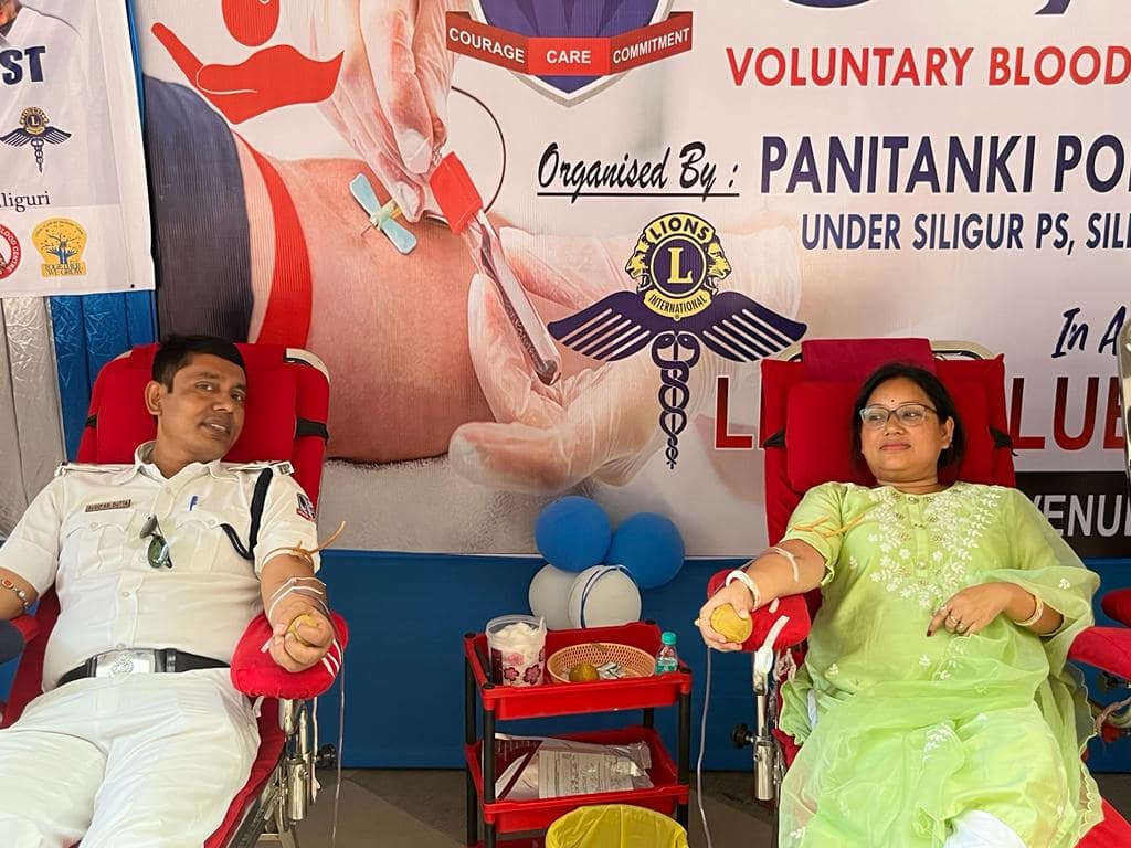 শিলিগুড়ি। থানায় রক্তদান শিবিরে সপরিবারে রক্তদান করে সমাজকে বার্তা ওসির। শিলিগুড়ি মেট্রোপলিটন পুলিশের উদ্যোগে প্রায় এক মাস ব্যাপি থানা গুলিতে রক্তদান শিবিরের আয়োজন করা হয়েছে। শনিবার শিলিগুড়ি পানিট্যাঙ্কি থানায় আয়োজন করা হয় রক্তদান শিবিরের। সেখানে স্ত্রী ও পরিবারের আরও দুই সদস্য সহ রক্তদান করেন পানিট্যাঙ্কি ফাঁড়ির ওসি সুদীপ দত্ত।এদিন থানায় এসে রক্তদান করেন অফিসার ইনচার্জ সুদীপ বাবুর স্ত্রী শিবানী দত্ত ও তাদের দুই ভাইপো প্রবীর দত্ত ও প্রভাস দত্ত। যদিও এ বিষয়ে ওসি সুদীপ বাবু কিছুই বলতে চাননি। তবে তার স্ত্রী শিবানী দত্ত জানান রক্তদান জীবনদান।পুলিশ আইনশৃঙ্খলার রক্ষার পাশাপাশি জীবনদানের এই মহতী উদ্যোগ গ্রহণ করেছে। শিবানী দেবী বলেন পুলিশের স্ত্রী হিসেবে গর্ববোধ করি।