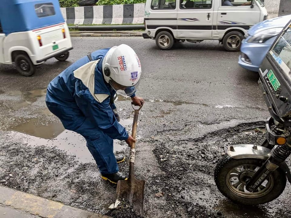 বেলচা হাতে মমতার পুলিশ! উর্দিতে রাস্তা সারাই